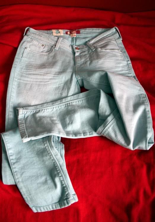Mielenkiintoisin ostos taas on ollut vaaleansiniset farkut Hennesistä (40 €). Vielä ei ihan uskalla käyttää, kun ulkona roiskuu kuraa kiitettävästi, mutta keväänmällä sitten.